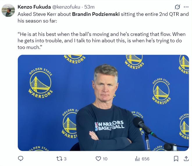 2025年10月25日,波杰姆斯基在接受采访中谈到,是否渴望像库里一样伟大时,波杰表示自己想要超越库里。随后勇士队记安东尼-斯莱德报道,在波杰说出这些话时勇士队内有人直接翻白眼了。